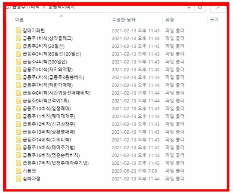 같은 실수를 반복할 때마다 어이없는 손실을 당할 때마다 두 번 다시 이런 경우 이런 우를 범하지 아니하여야겠다, 또 이런 구간이 오면 무조건 박아야지 하는 마음으로 즉 임란때 류성룡이 쓴 징비록처럼 기록하고 또 정리한것이 바로 급등주17비칙입니다.