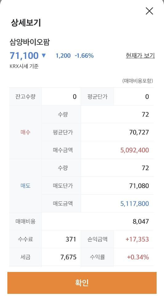 12월2일 삼양바이오팜 3% 수익 71,600원 매도 후 72,300원 마감