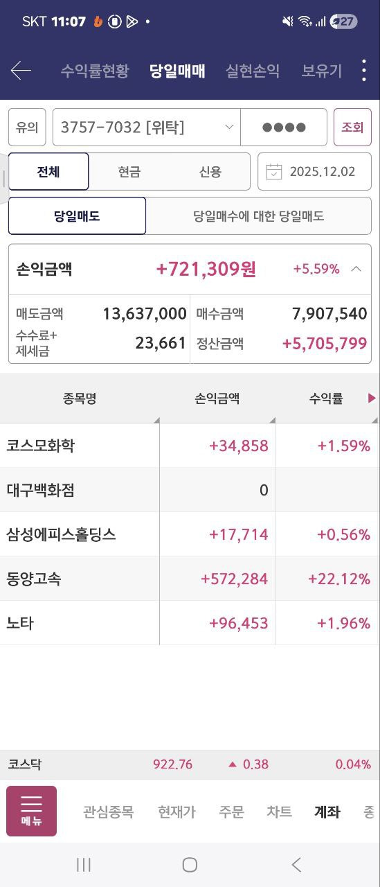 12월2일 직장인문자반성적보고 - 삼성에피스홀딩스 4% 수익 / 아이티켐 3% 수익 / 삼양바이오팜 3% 수익