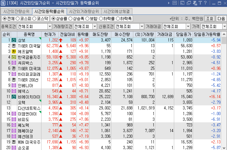 다시 산일전기 시가 나오고 급락후 40200원에서 종가 50200원 마감 후 신규주2연타법 통함 시간외상한가