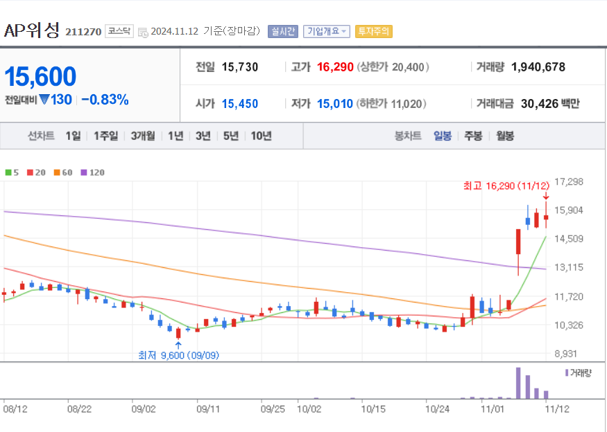 11월13일 종목브리핑 (일신석재,삼부토건,AP위성)