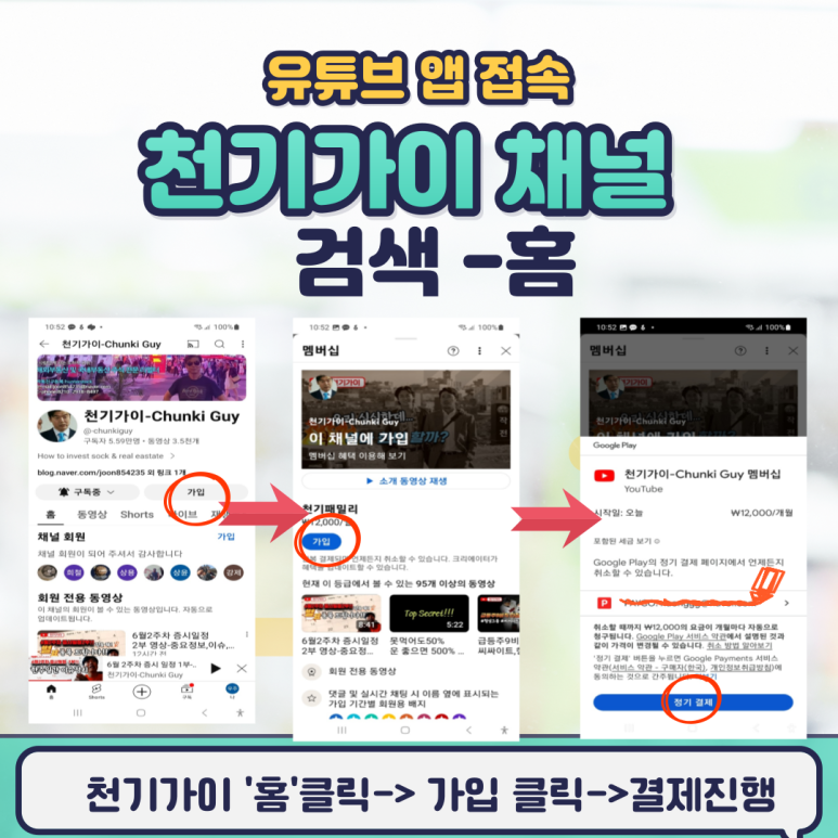 - 유튜브 천기가이 채널 홈에서 회원전용영상을 크릭을 하시면