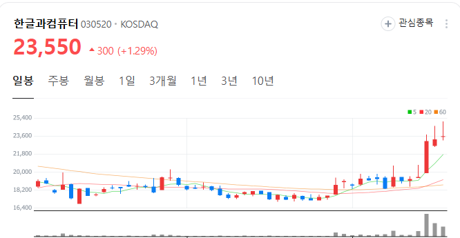 3. 한글과컴퓨터: 급등주1비칙 대비, 눌림목 줄 시 진입,손절가 3%설정