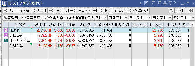 1. HLB제약(30%) : HLB, 간암신약 '리보세라닙', 美 FDA BIMO 실사 통과 소식에 상한가