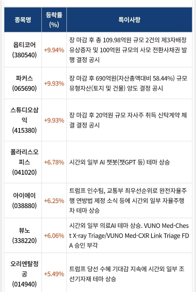 3.장전뉴스 관련주 제공