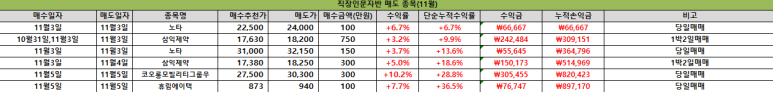 □ 11월5일 직장인문자반성적보고 - 코오롱모빌리티그룹우 10% 수익 / 휴림에이텍 8% 수익