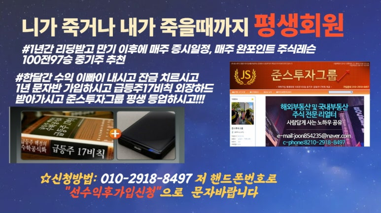 (급등주17비칙 외장하드 제공 및 준스투자그룹 평생회원 자격은 부여 안됩니다)