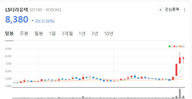 #LS티라유텍:7700원 손절가 잡고 장중 하락시 단타 가능합니다