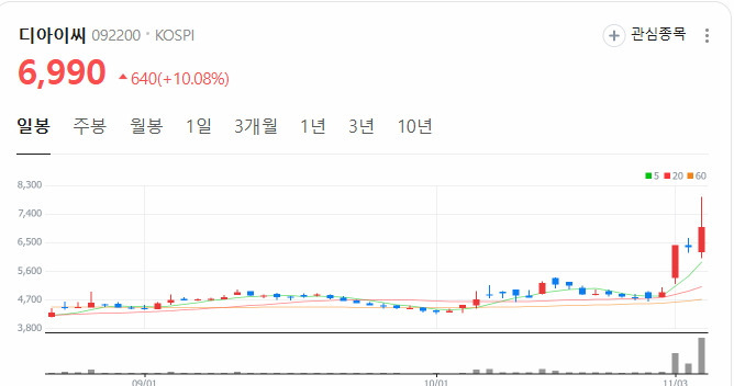 #디아이씨: 세력주 냄새가 나는 종목으로 장중 급락시 손절가 3%잡고 매수진입
