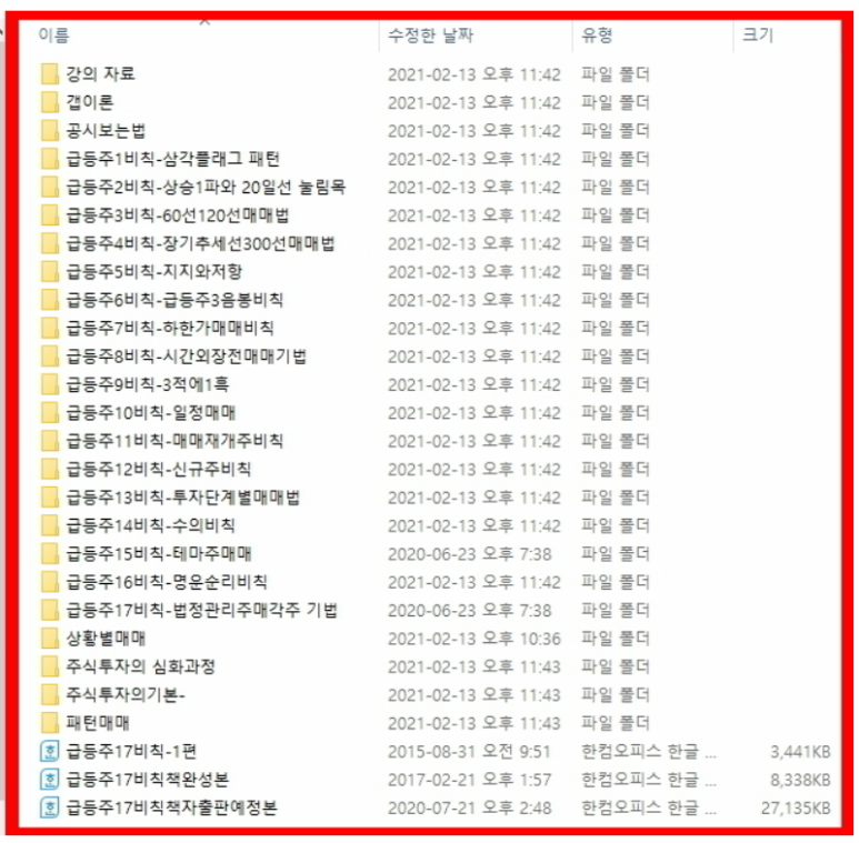 같은 실수를 반복할 때마다 어이없는 손실을 당할 때마다 두 번 다시 이런 경우 이런 우를 범하지 아니하여야겠다, 또 이런 구간이 오면 무조건 박아야지 하는 마음으로 즉 임란때 류성룡이 쓴 징비록처럼 기록하고 또 정리한것이 바로 급등주17비칙입니다.
