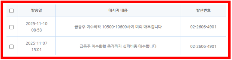 -핸드폰 문자와 텔레그램방에서 추천이 나갑니다