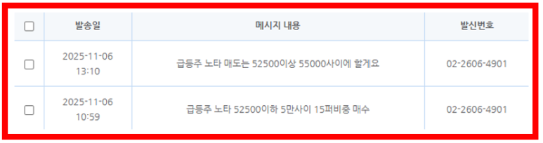 11월6일 노타 5% 수익 53,700원 매도 후 55,400원까지 상승 후 49,750원 하락 마감