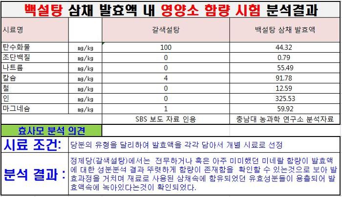가. 발효액이 설탕물(혹은 맹물)이라는 주장은 불순한 의도를 가진 거짓말이었음이 밝혀졌다.