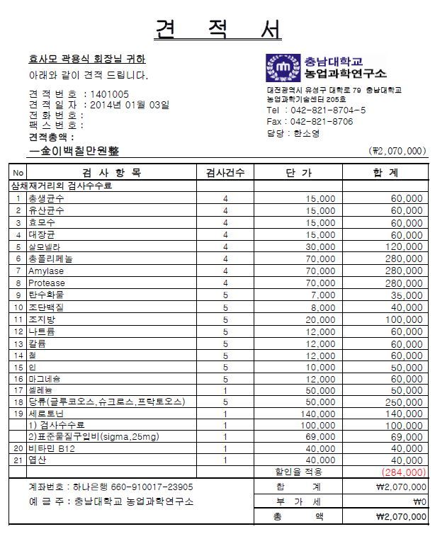 향후에도 발효액의 품질향상을 위해 보다 과학적인 시험분석을 희망하시는 분들의 다양한 형태의 자유로운 후원을 환영합니다.