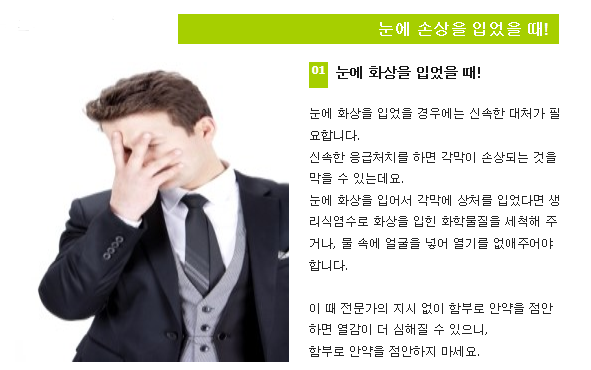 눈을 다쳤을때 응급 처치법 작성자위성준|작성시간13.05.27|조회수29 목록 댓글 0 글자크기 작게가 글자크기 크게가 다음검색 현재 게시글 추가 기능 열기 북마크 공유하기 신고 센터로 신고 댓글 댓글 0 댓글쓰기 답글쓰기 댓글 리스트