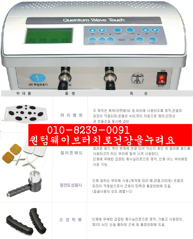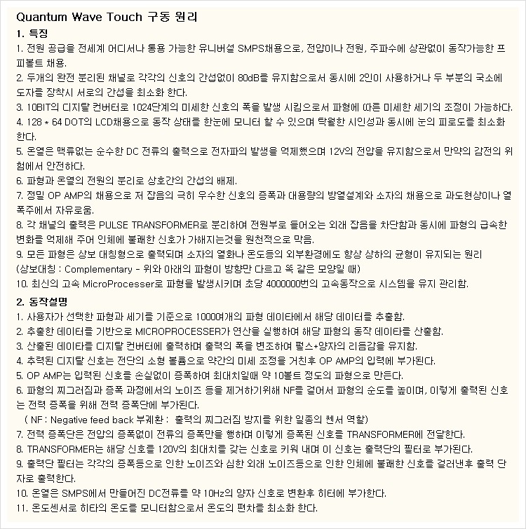 ※ 특징 : 퀀텀 웨이브 터치는 110V-220V자체 사용이 가능하며, C.P.U.칩을 사용 기존의 시장에 판매