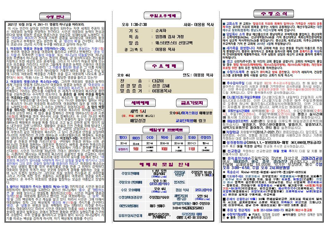 ◈ 특송순서: 목사님-박민정-임정례-실버구역-중고등부-여전도회