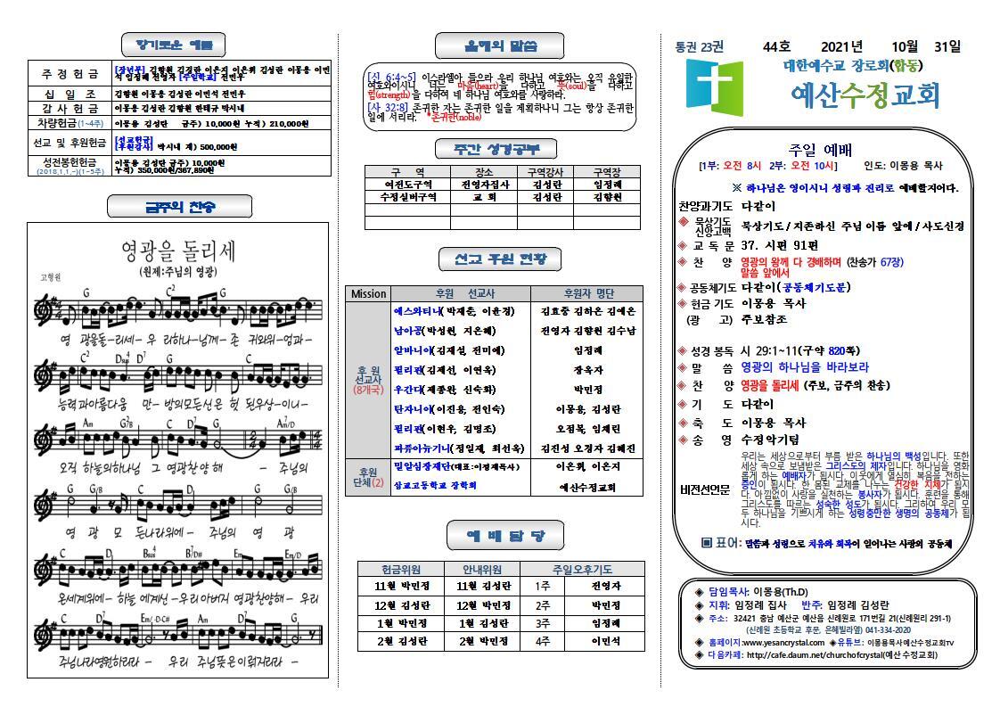 ■ 후원 및 헌금계좌 농협 351-0294-5850-73 예금주:예산수정교회
