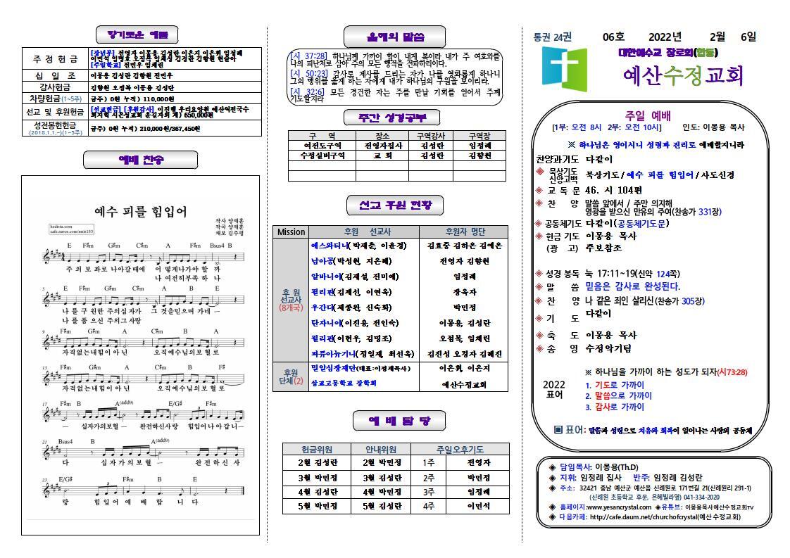 ■ 은혜의 강물헌금(2월) 2월 은혜강물헌금도 흘러보낼 수 있게 하옵소서. 2월 중 자유롭게 헌금하시면 됩니다.