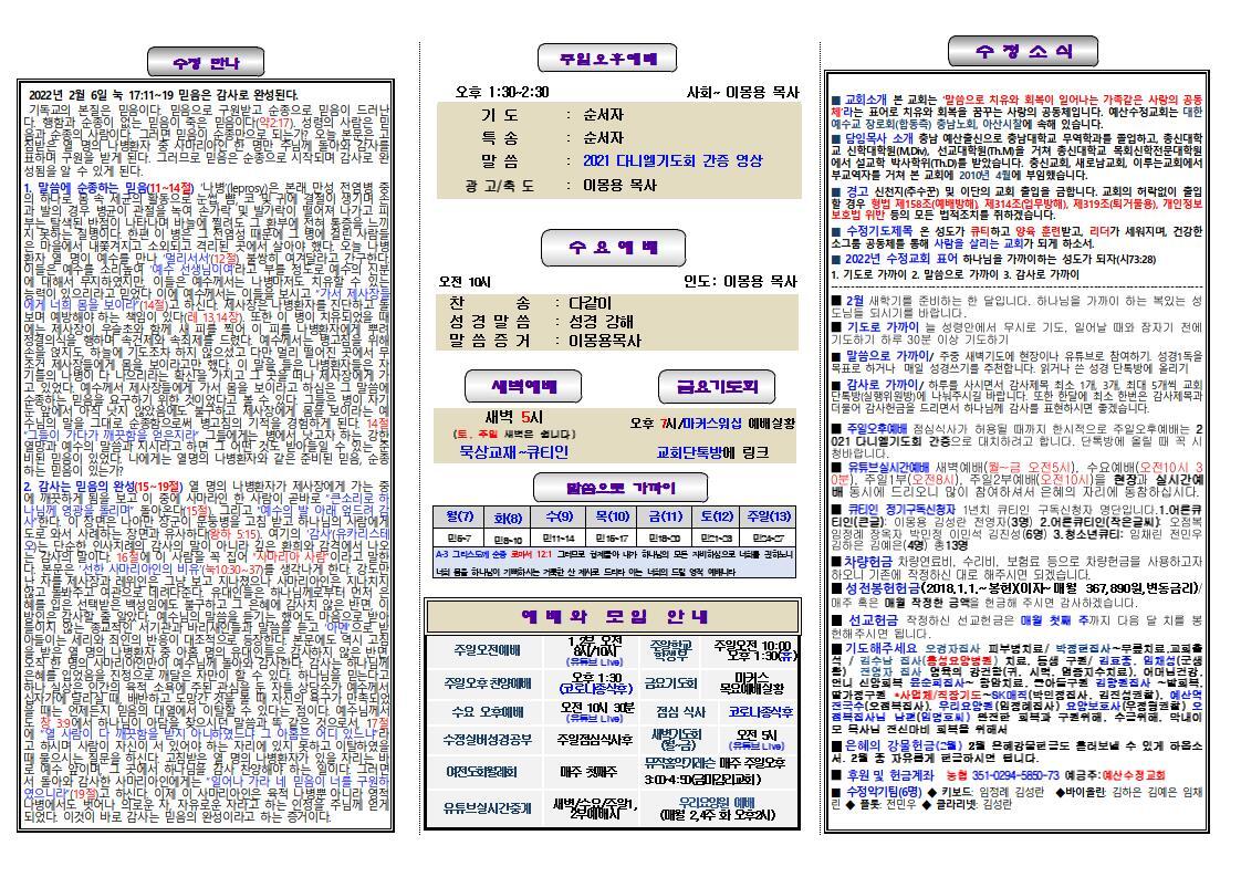 ■ 2월 새학기를 준비하는 한 달입니다. 하나님을 가까이 하는 복있는 성도님들 되시기를 바랍니다.
