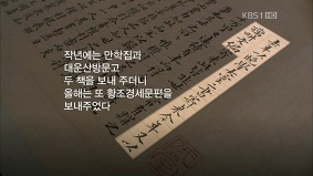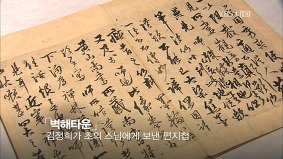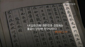 처절한 유배생활에서 유일한 희망은 친구였던 황산 김유근이었다. 권력을 장악하고 있던 안동김씨 집안의 핵심 인물이었고 순조와 처남 매부지간이었던 김유근. 정치적으로는 대척점에 서 있었지만 김정희와 김유근은 어릴 때부터 절친한 관계였다. 최근 발굴된 김유근의 문집에는 두 사람이 얼마나 각별했는지 증언하고 있다.