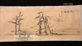 세한이란 추운 겨울이라는 의미입니다. 세한연후지송백지후조(歲寒然後知松栢之後彫). 추운 겨울이 돼야 소나무와 잣나무에 시들지 않음을 안다는 그 말로 더 유명한 그림 세한도. 헌데 산수화도 아니요, 인물화도 아닌 이 단순한 그림이 왜 국보로 지정된 걸까요? 또 이 세한도를 왜 문인화에 정수라 표현하는 걸까요. 그동안 세한도는 그 유명세에 비해서 전체를 감상할 기회가 없었습니다. 오늘 역사스페셜에서는 국보 제 180호인 이 세한도의 전체를 공개하고 그 이면에 숨겨졌던 비밀스런 이야기를 따라가 보겠습니다.
