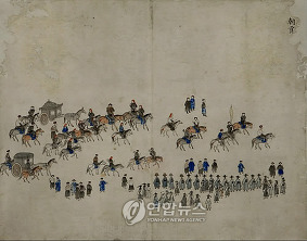 그런데 특이한 점이 눈에 띤다. 환송연회 가운데 앉은 김정희. 그의 복장이 무관 복장이다.