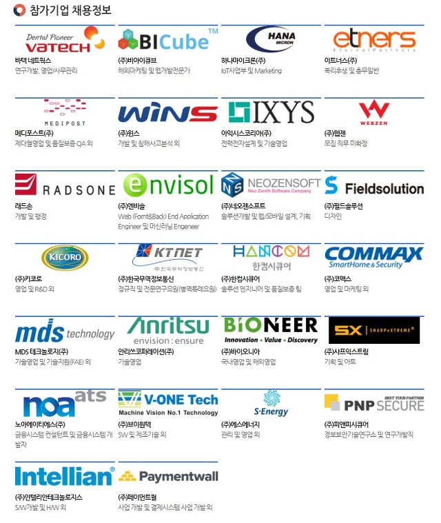 현재까지 섭외된 기업 목록이며, 추가 및 변경될 수 있음
