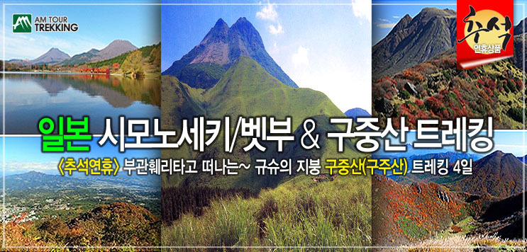 선내 조식 후 선내 하선 및 입국수속. ▶**구중산 철쭉 트레킹** (1,787m / 예상소요시간 : 6~6:30분) 마키노토게-구주가케산(1,503)-니시센리가하마(1,470)-구주분기점(1,590)-구주산정상(1,787)-구주분기점-기타센리하마(1,460)-홋케인산장(1,303)-보가쭈루(1,220)-아메가이게이고(1,350)-쵸자바루 하산 후 호텔로 이동 호텔도착 후 석식 및 온천욕