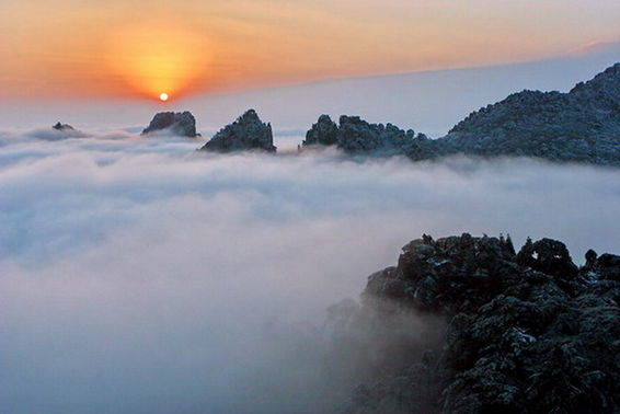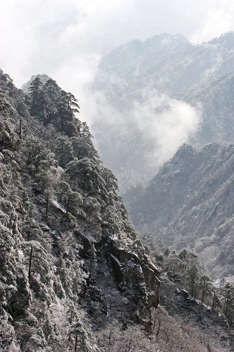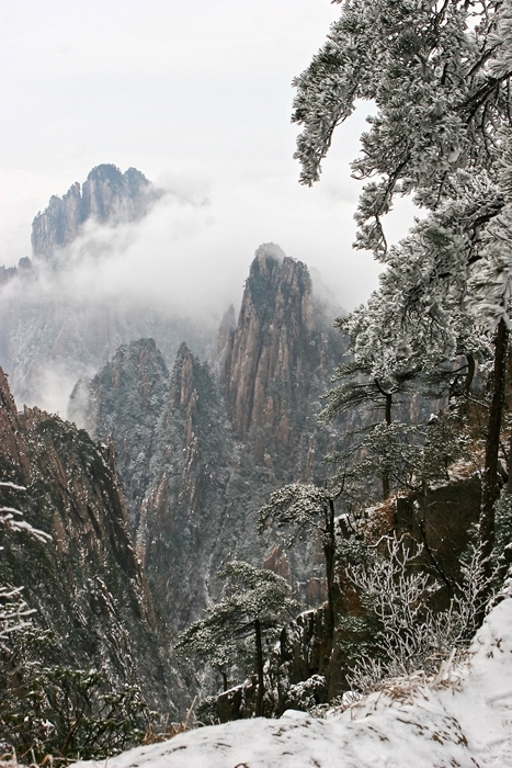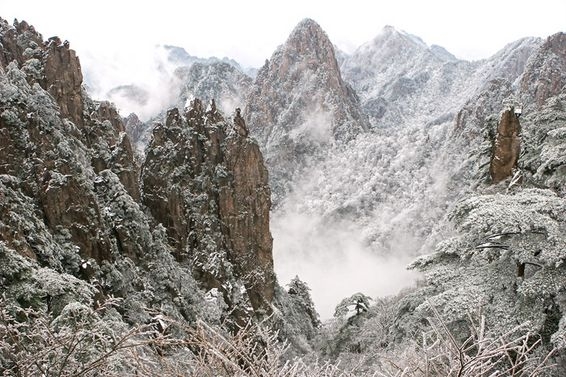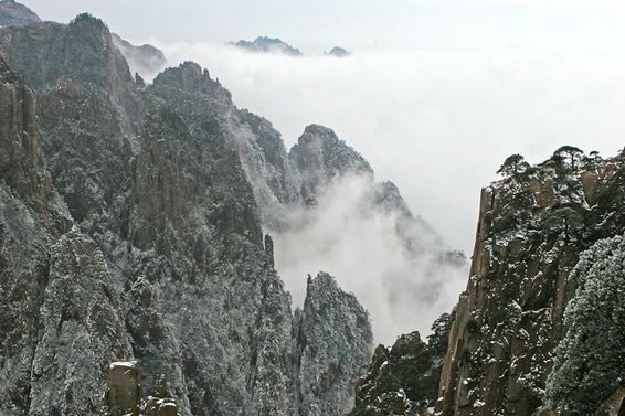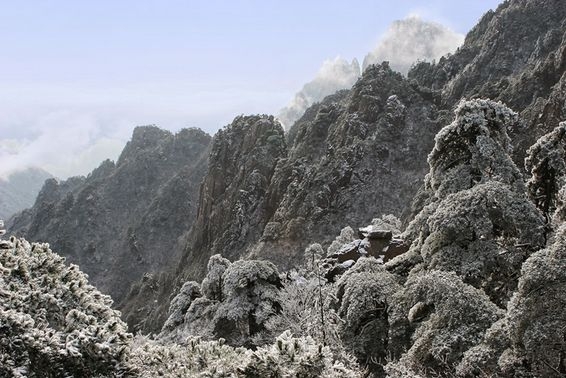 중국의 명산 황산의 겨울 풍경은 마치 한 폭의 수묵화를 보는 듯 묘한 멋을 지녔다. 높고
