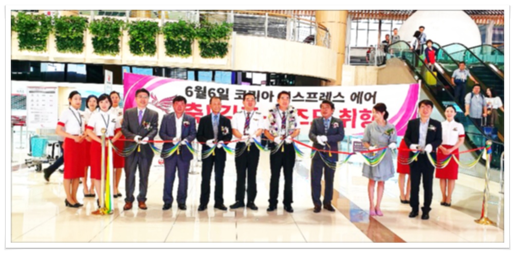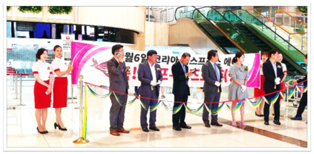 코리아 익스프레스 회장 및 항공사 관계자들과 컷팅식(왼쪽 두번째가 AM투어 이희선 입니다.)