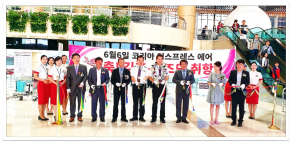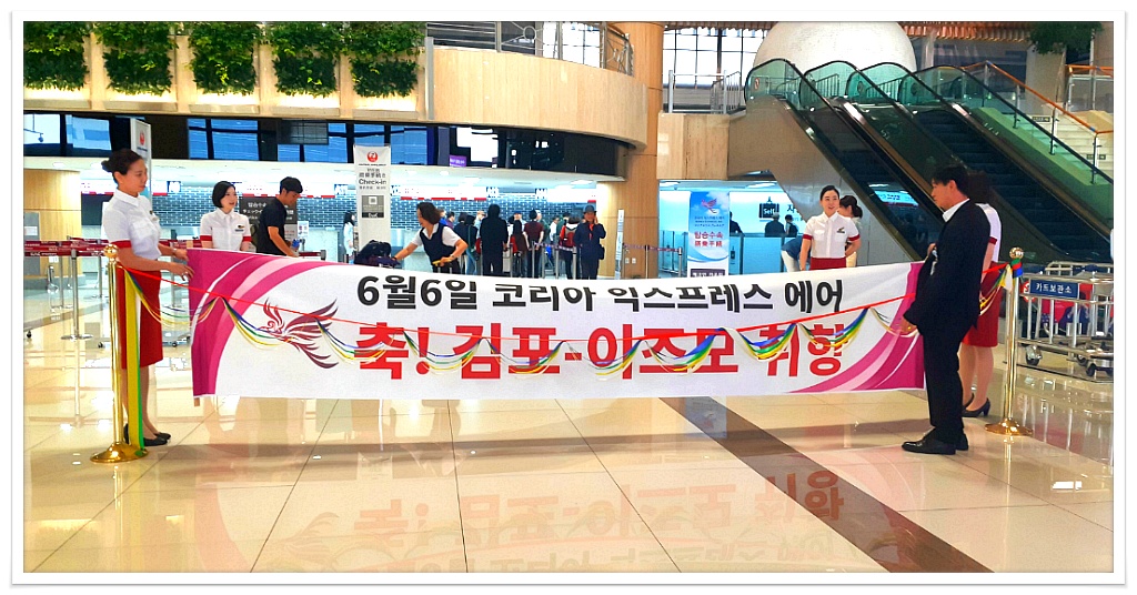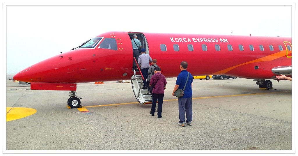 코리아 익스프레스 항공은 오전 8시40분 김포공항 국제선에서 출발합니다. 고객님들은 7시까지 김포공항 국제선 2층 13, 14번 카운터 앞으로 오셔서 수속을 하시면 됩니다. 50인승으로 아주 빠른 수속이 진행 가능합니다.