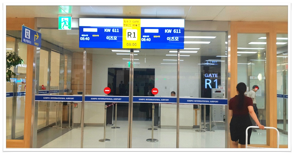 3층 출국장을 들어가시면 바로 정면으로 R1 게이트가 코리아 익스프레스 항공 탑승 게이트 입니다. 좌, 우 에 롯데면세점과 신라 면세점이 위치하고 있습니다.