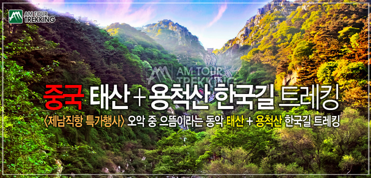 제남 태산 + 용척산 한국길 트레킹 3박4일 상 품 가 : \599,000원~ 여행일정 : 3박4일 항 공 사 : 중국 동방항공(MU) 적용기간 : 4/1 ~ 6/30 출 발 일 : 2018년 04월부터 매주 일요일 출발
