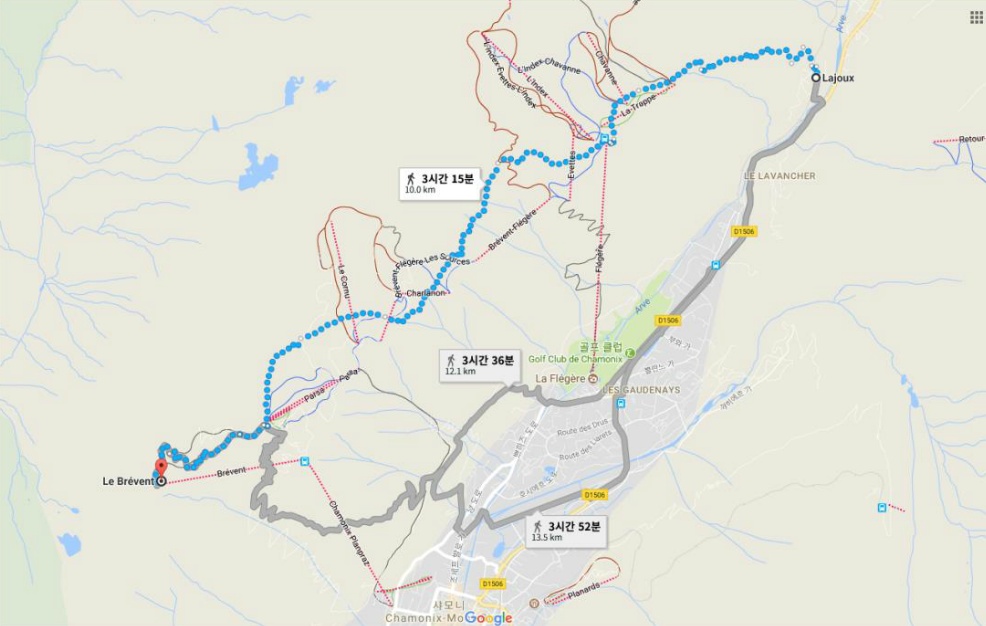 Aiguilles Rouges(에귀 후즈), Aravis(아라비스), Fiz(피즈) 산맥 등등, 몽블랑을 대표하는 알프스 산맥군 들을 이동하면서 감상하실 수 있습니다. 계속 이동하면서 만년설 빙하가 녹아 흐르는 샤모니 계곡을 지나 (레 공따민느)Les Contamines로 이동합니다.