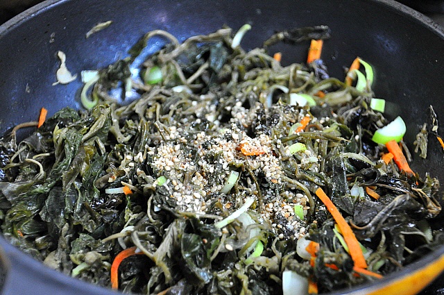당근채 약간, 파, 들기름 2숟가락~ ,깨소금