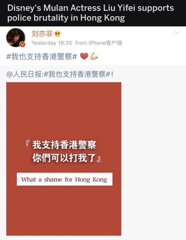 "나도 홍콩 경찰을 지지한다"고 적었다.☜