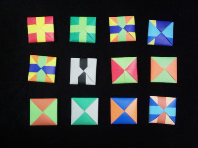 줄무늬를 넣은 딱지를 접는 방법은 매우 간단하다. 기존의 딱지 접는 방법에서 한 번만 더 접으면 된다. 여기 그 방법을 사진으로 찍어서 올려놓았다.