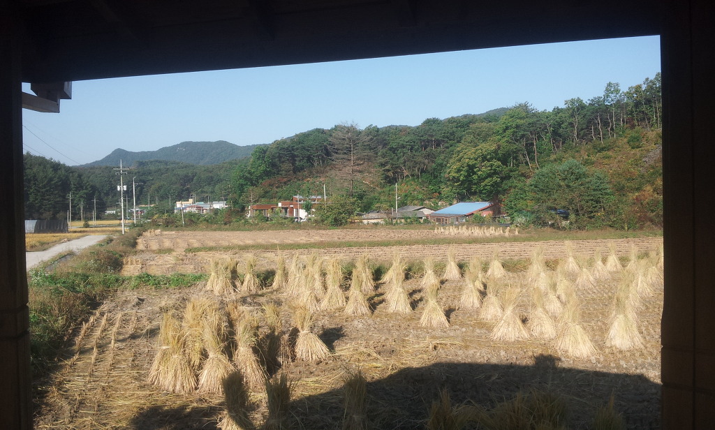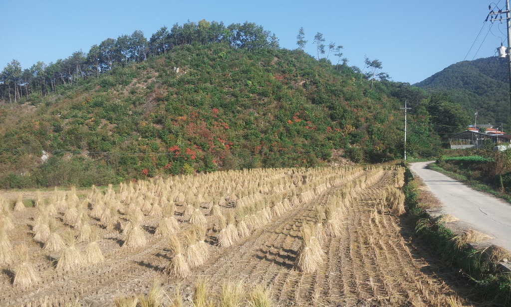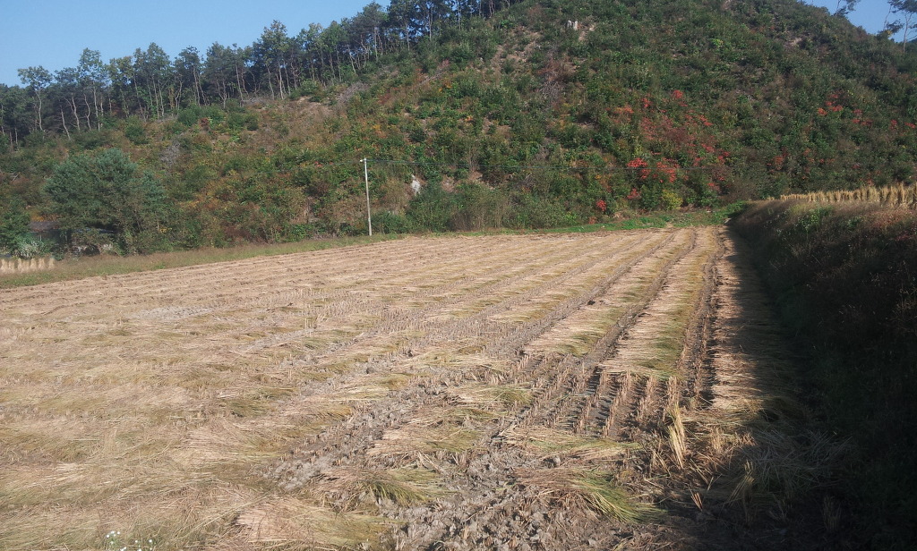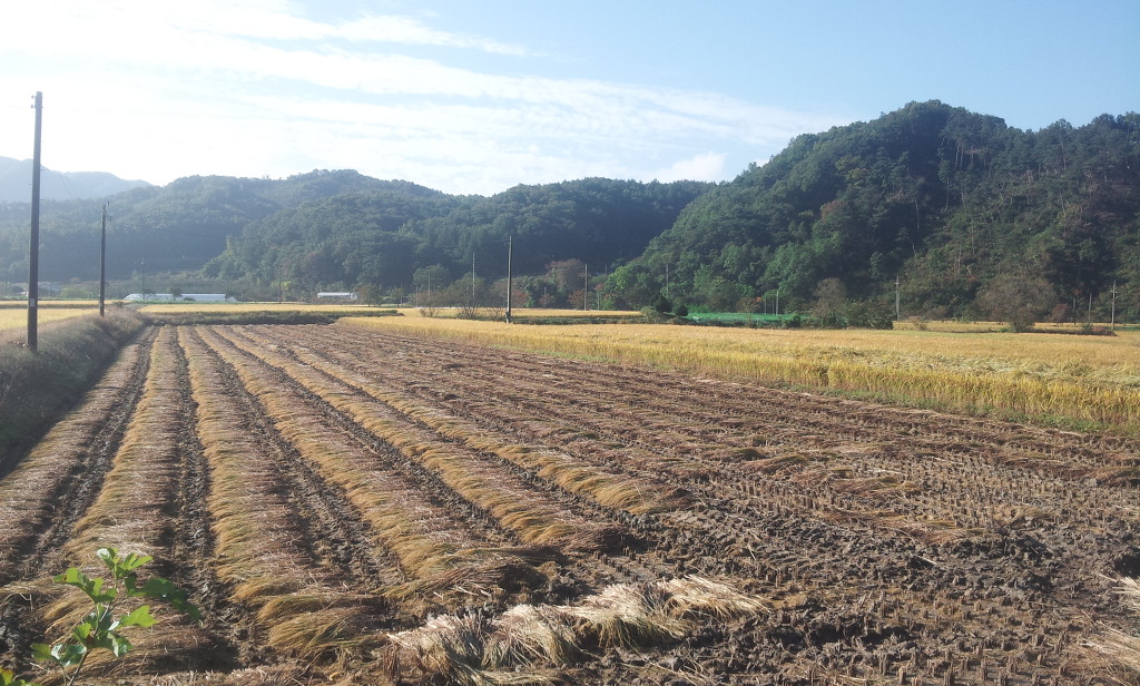 봄부터 이 가을까지 내내 서 있었던 벼들이 짚이되어 누워 있는 것이 편안해 보인다.