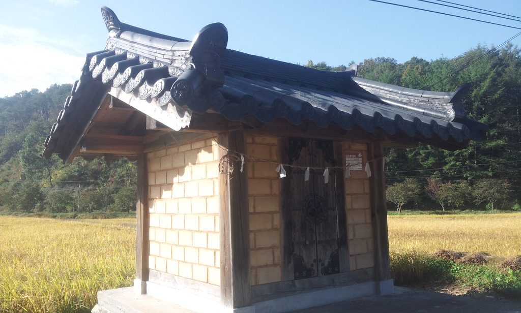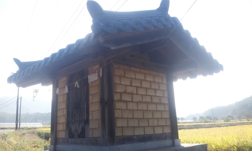 마을을 지키는 서낭당. 저 서낭당 안에는 백운산 여신이 모셔져 있다. 보통은 남신을 모시는데 우리 마을은 여신을 모신다. 간혹 지나다가 이곳에 멈춰 기도를 하곤한다.