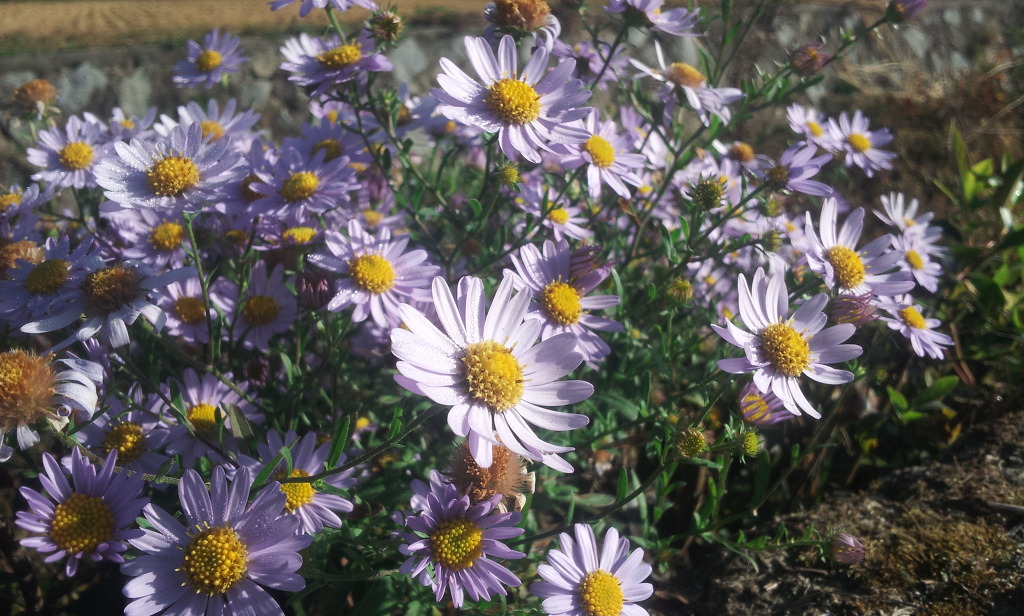 쑥부쟁이 꽃이 길가에 한아름 피어났다. 산국과 함께 가을을 꽃향기로 가득하게 하는 예쁜꽃이다.