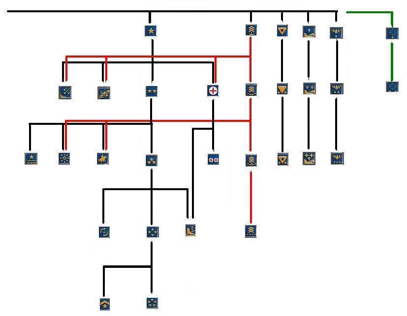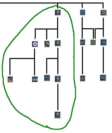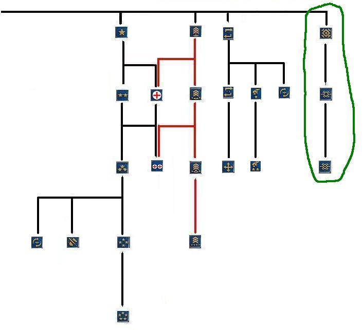 화약 유닛 (녹색 선은 대전차보병, 지대공미사일보병, 이동식지대공미사일보병, 기계화보병만 해당)