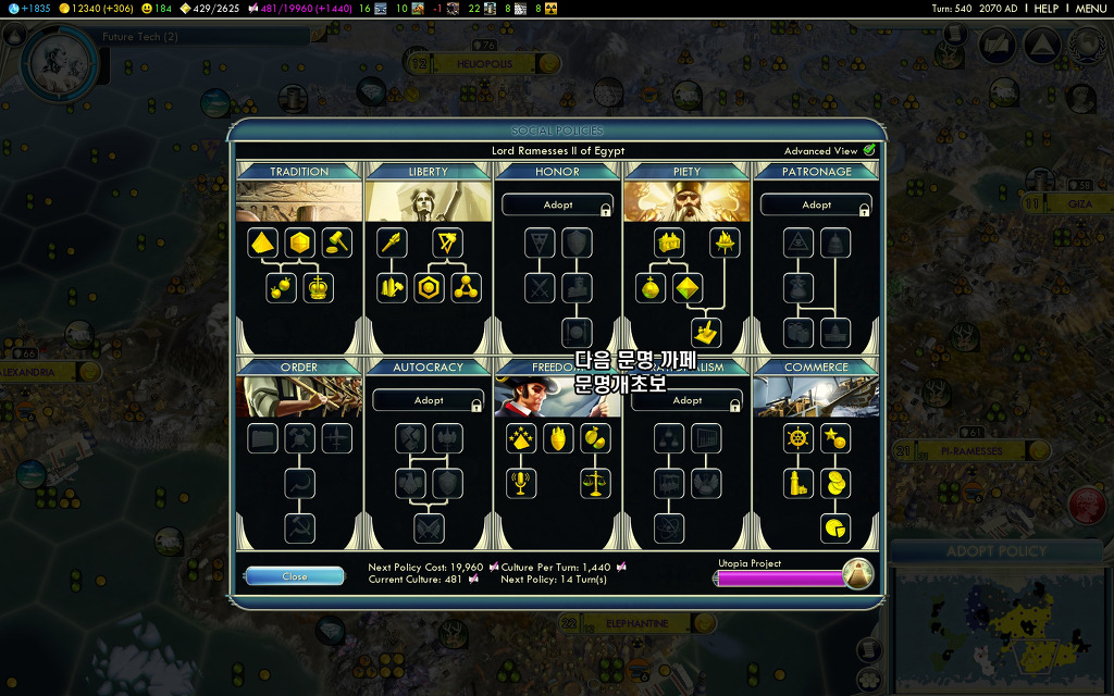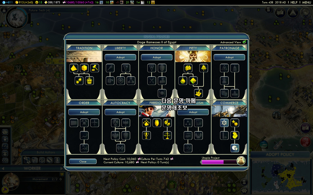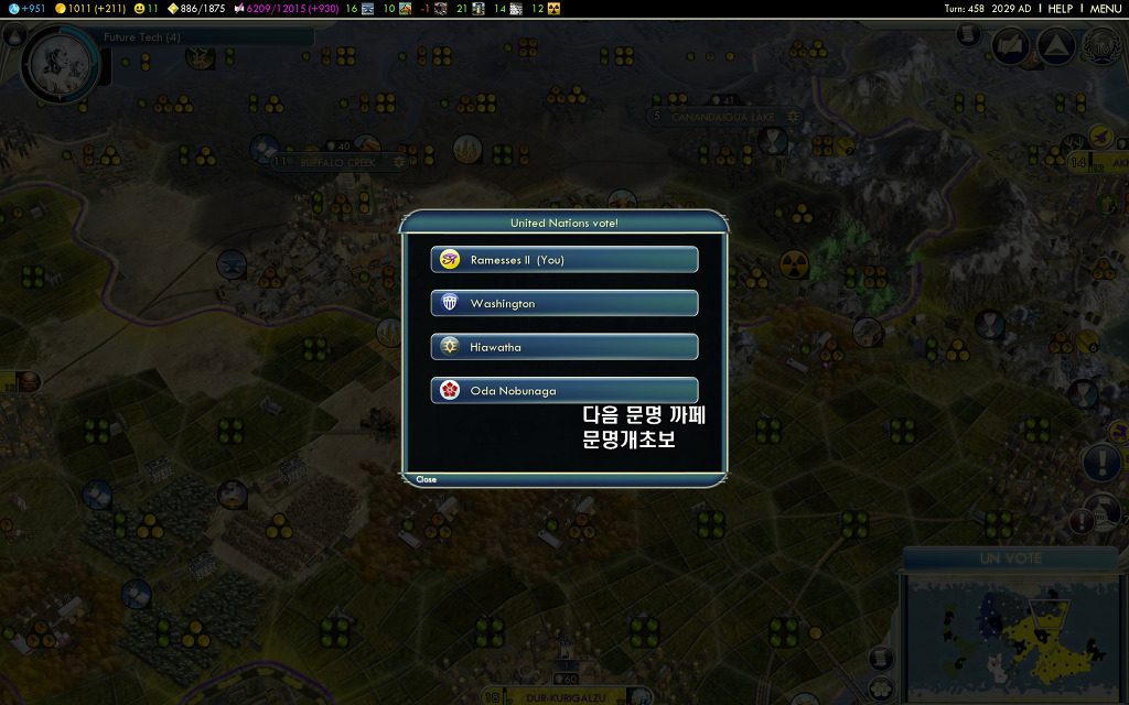 해보면서 느낀건데 UN을 지으면 투표를 9표 먹으면 외교적 승리가 되는 모양입니다.
