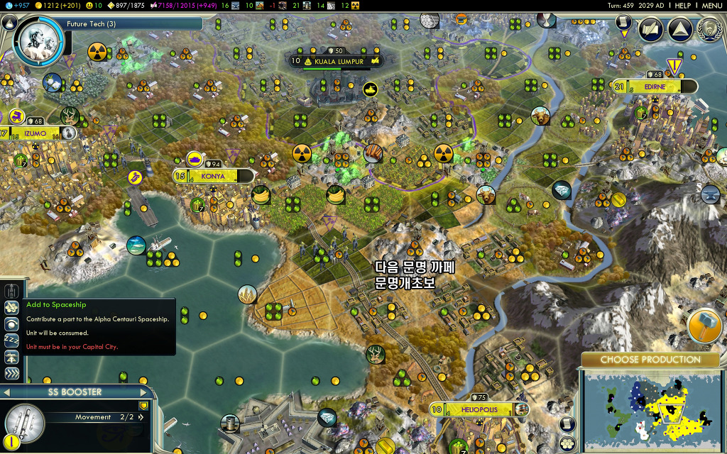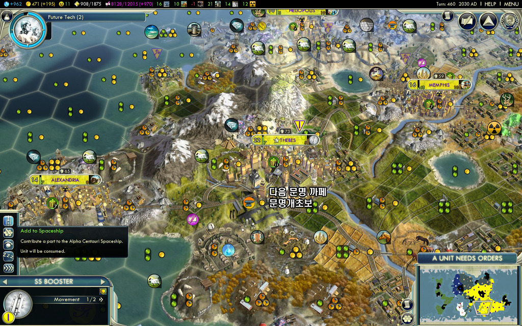 문명4처럼 비행장 화면이 따로 안나오고 무조건 수도에서만 쏘아올려야되는가보더군요.