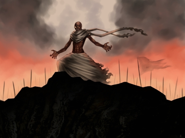 그런데 주목할 것은 비폭력주의, 무저항으로 알려져 있는 그의 이미지가 폭력왕, 유혈사태 등으로 변질었다는 것이다.