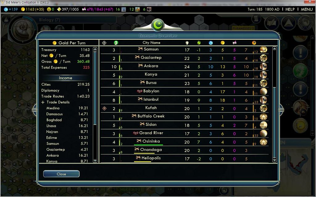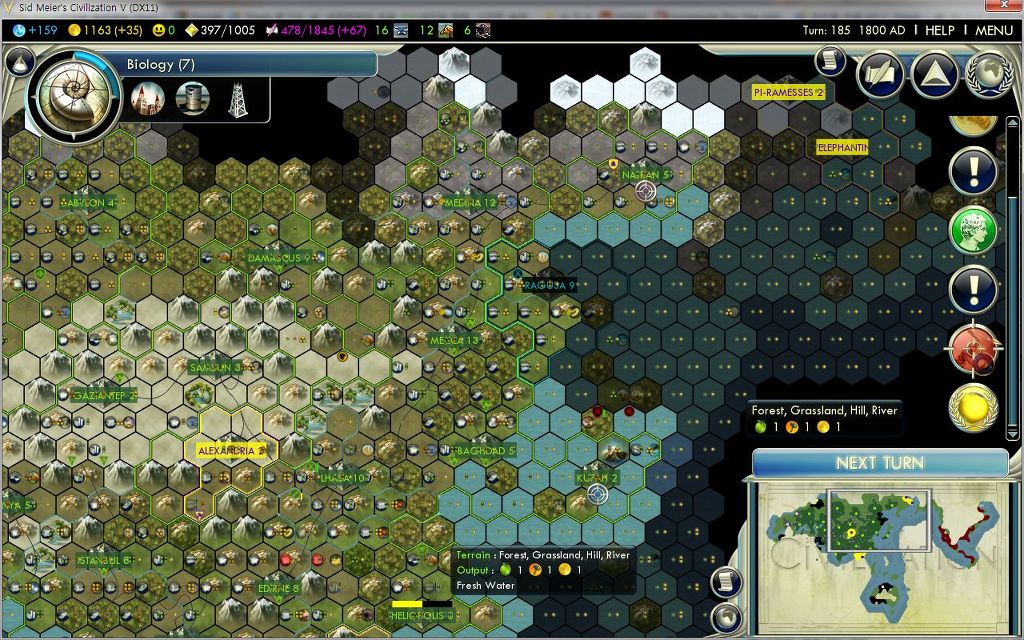그 뒤에는 계속 정복 전쟁을 벌이면서 사치 자원을 충분히 얻어주고 주요 도시에서 행복관련 건물을 지어서 행복 관리를 해주면 주욱 치고 나갈 수 있습니다..