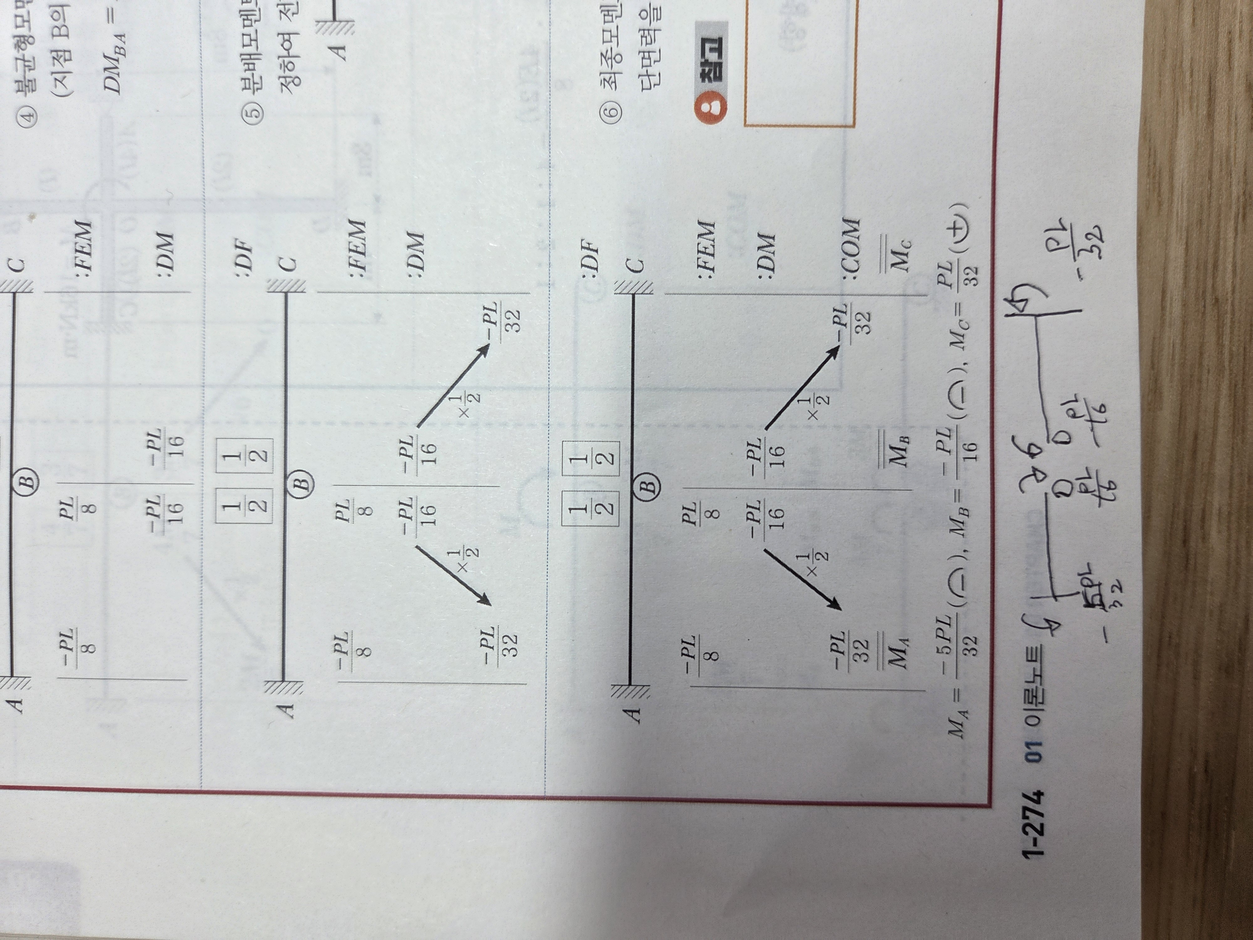 강의에서는 재단모멘트가 -PL/32로 나오는데