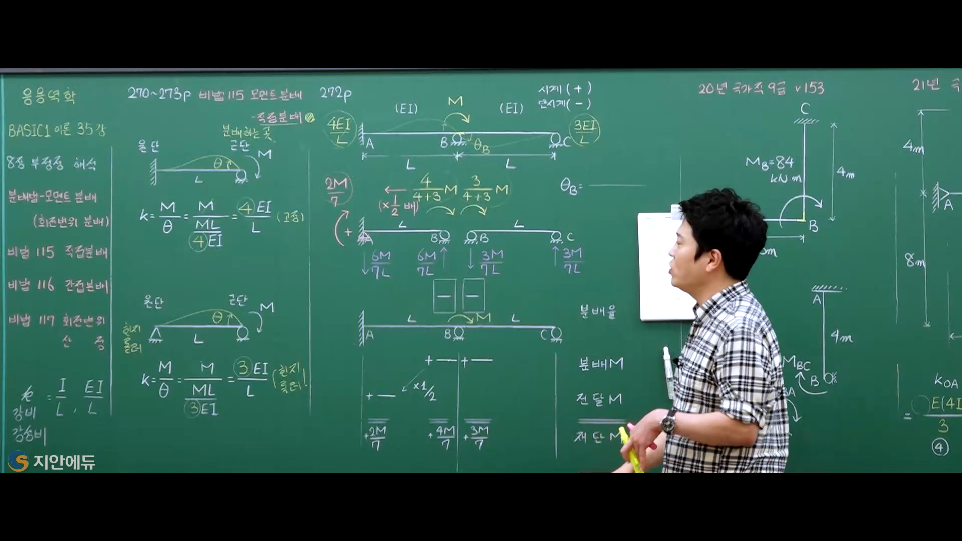 1, 2 는 둘 다 단부 롤로지점으로 바꾼 거예요. 다만 2번은 간접 분배라 고정단으로 가정해서 고정단모멘트를 뒤집어서 분배하는 거예요.
