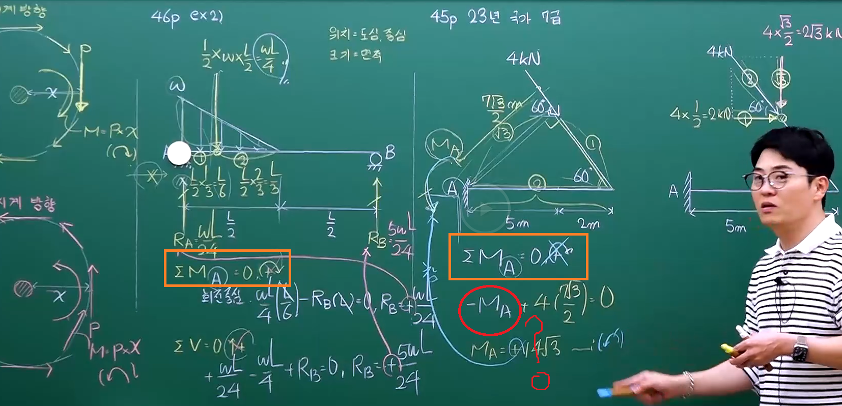 45p 23년 국가직 7급은 고정단지점이라 빨간색 원 -ΣMA 이게 들어간건가요?
