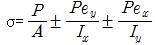 작성자생즉사사즉생 작성시간 09.02.05 복편심이니까 일단 축하중을 등가하중의 원리로 단면의 도심으로 이동시켜 표시를 해주면, 하나의 집중하중과 두개의 모멘트 하중이 작용하게 됩니다. 거기서부터 쉽게 생각해서 눌러지는 쪽은 저 식에서 (+)일테고 인장된다 싶으면 (-)이겠죠